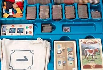 Si vous jouez avec la variante Brahman il est conseillé de remplacer les cartes Simmental par les cartes Brahman (Cf. carte de droite photo ci-dessous). Le reste de la mise en place ne change pas pour cette variante. Lorsque vous livrez une Brahman utilisez sa valeur et recevez également 4 pièces avant de la défausser. Pas mal pour toucher un peu d’argent supplémentaire. C’est le nerf de la guerre : achat de vaches, d’ouvriers, constructions de bâtiment et placement de Magasins.
