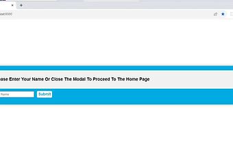 Après avoir fermé le modal ou soumis un nom, l’application accédera à la page d’accueil. Sur la page d’accueil, vous verrez un site Web générique qui affiche le mot « Bienvenue », suivi de la chaîne que vous venez de soumettre dans le modal.