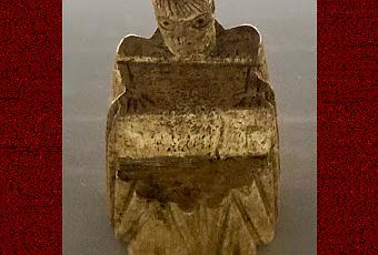 Voici, ci-dessus un pion de tric-trac à décor d’oreilles, et ci-dessous un autre figurant un quadrupède.Le jeu de trictrac se joue à deux. Il requiert de la stratégie bien qu’il y ait une part de hasard. Il permet aux seigneurs et aux chevaliers de s’entraîner à la guerre. Son nom contemporain est backgammon.Inventé en Orient au VI° siècle le jeu d’échecs arrive en Europe au X°. Les archéologues trouvèrent à Mayenne 37 pièces, ce qui est la plus grande collection mise à jour. On y reconnaît un fou, une tour et une autre qui correspond à un roi.Ce roi est taillé d’un seul bloc massif symbolisant son trône. Son vêtement est souligné par de profondes cannelures. La tête est coiffée d’une calotte sur laquelle de fines lignes obliques évoquent les cheveux. Deux mains à quatre doigts sont gravées sur la parie supérieure.Êtes-vous maintenant convaincu que la Mayenne est bel et bien une terre de jeu ?