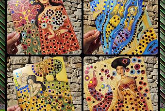 Les enfants et moi avons pu tester les nouvelles pochettes d'activités "À la manière" qui permettent de decouvrir l'Histoire de l'Art à travers des coffrets créatifs. J'ai choisi Gustav Klimt car j'adore cet artiste, la technique artistique des 700 sequins à coller me paraissait idéale et facile pour mes loulous.