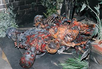 Corps carbonisés représentés dans un labyrinthe hanté sur le thème « The Last of Us » à Universal Studios Hollywood.