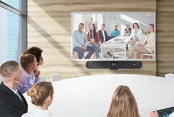 Une barre vidéo performante ne serait rien sans une section audio qualitative. Sur la VB350, pas moins de 14 micros captent les voix des participants jusqu’à 10 mètres. Par ailleurs, le son est synchronisé avec l’image. Les caméras se déplacent pour suivre et recadrer automatiquement en fonction du nombre de personnes présentes prenant la parole.